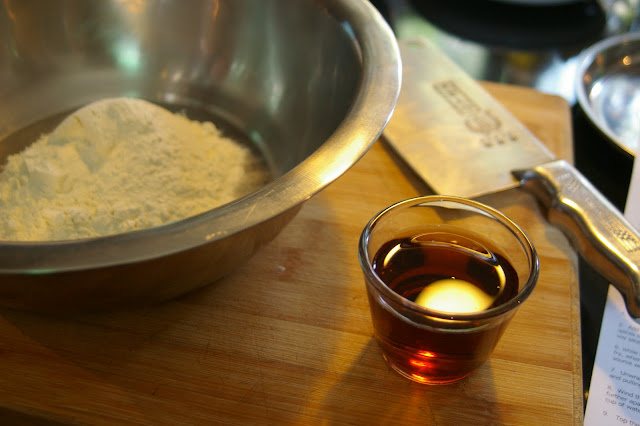 - 1 cup of plain flour – wholemeal flour can’t really be substituted here because the noodles must be stretchy, and you can’t get stretchy with the grainy.